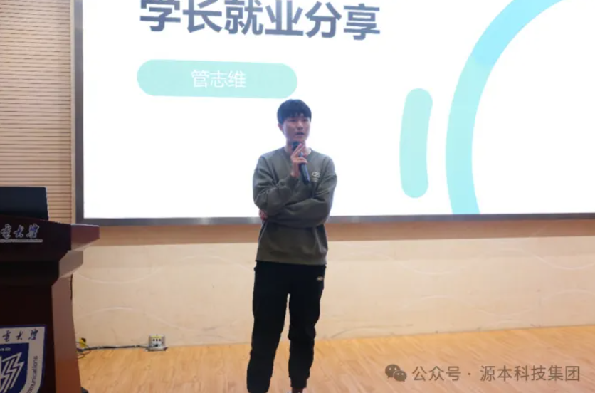 最后,DB旗舰科技就业班优秀学员、21级通信工程专业学生管志维分享了他本次秋招的求职感悟。他结合自身经历以及周围求职者的实例讲述了写简历和面试的技巧。他分享了自己从准备考研,到最终选择在DB旗舰科技集团学习技术就业的心路历程,鼓励同学们保持信心,持续参加实习,积累项目经验。